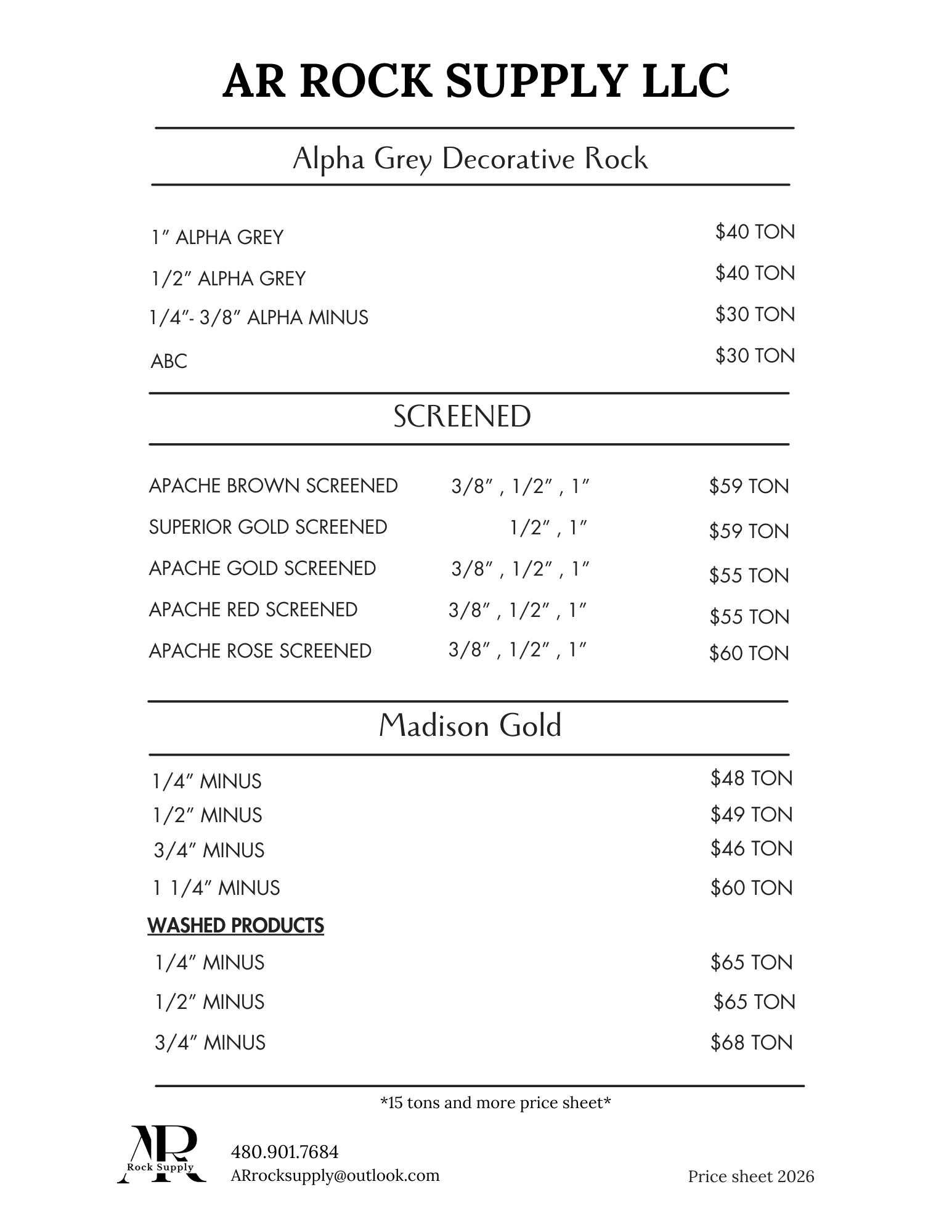 Copyright © 2026 AR Rock Supply LLC - All Rights Reserved.